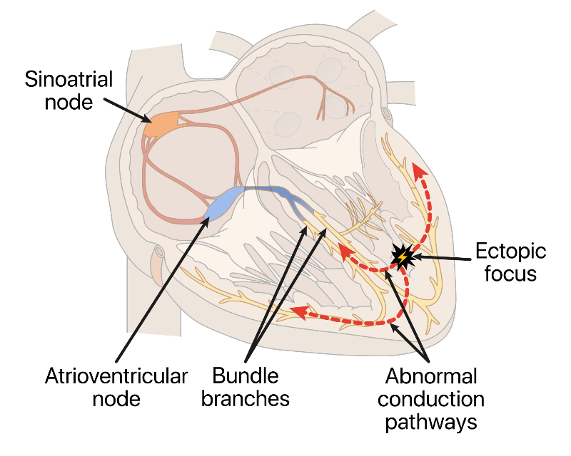 간단히 말해, PVC는 심장의 아랫부분(심실)에서 정상적인 심장 박동보다 빨리 전기 신호가 발생하는 현상이에요.